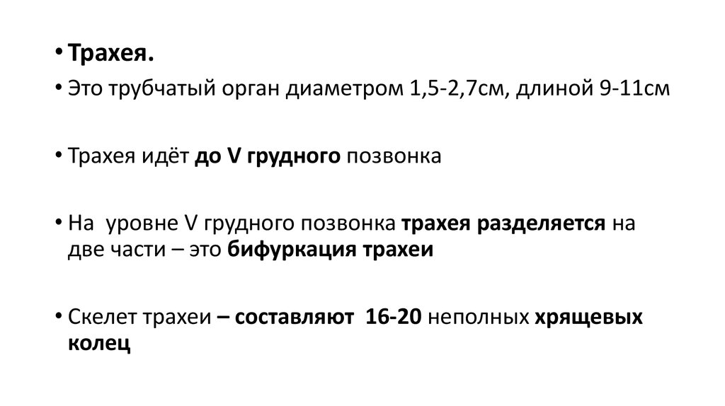 • Трахея.• Это трубчатый орган диаметром 1,5-2,7см, длиной 9-11см