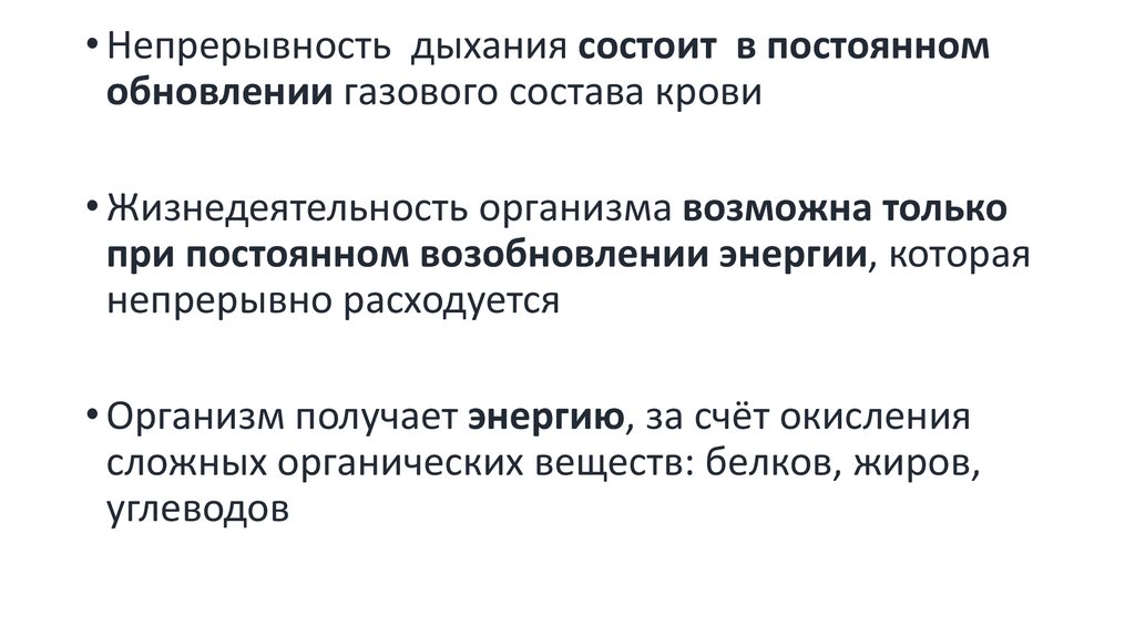 • Непрерывность дыхания состоит в постоянномобновлении газового состава крови