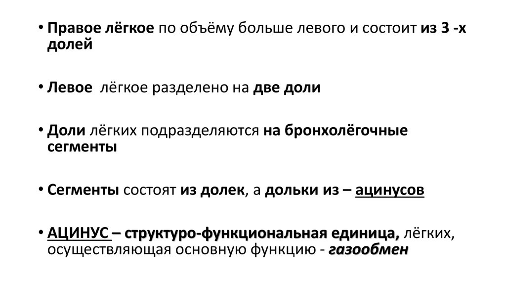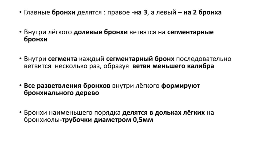• Все разветвления бронхов внутри лёгкого формируют