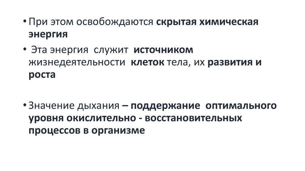 • Значение дыхания – поддержание оптимального