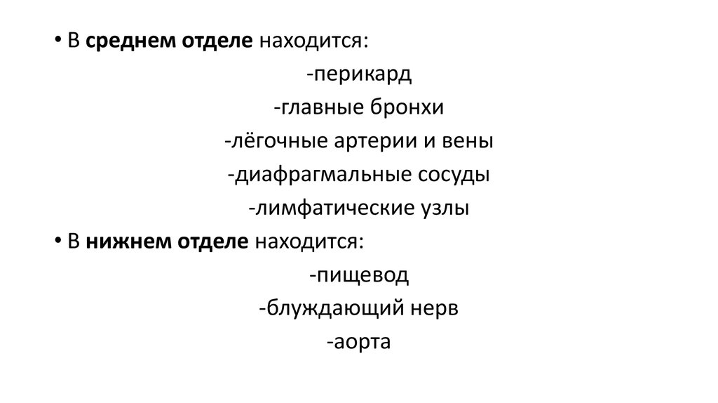 • В среднем отделе находится:-перикард