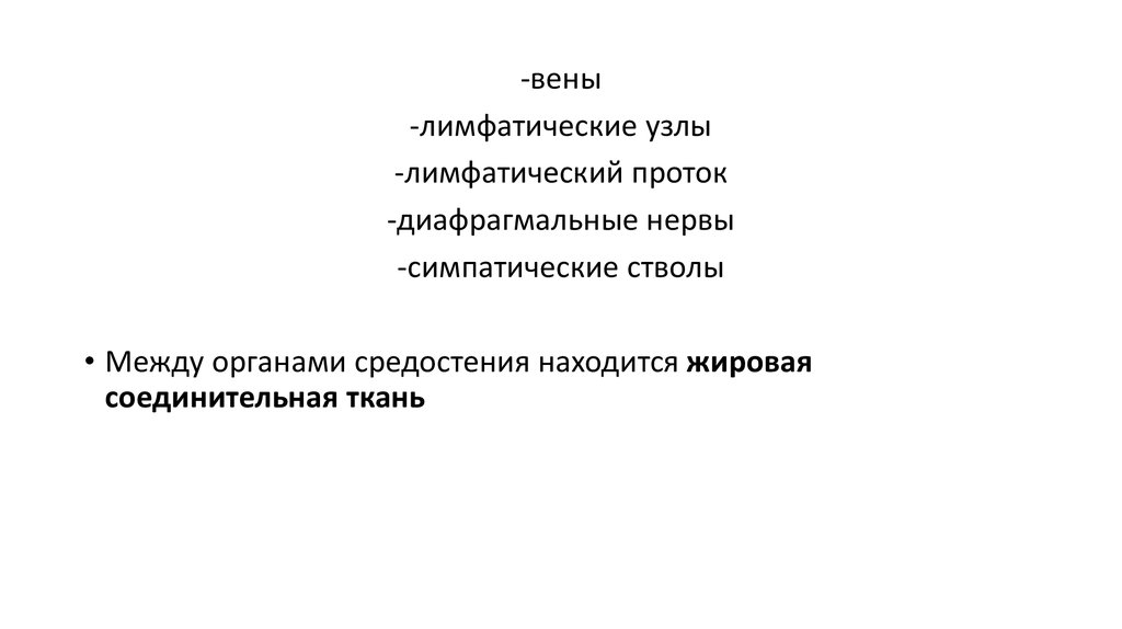 • Между органами средостения находится жировая