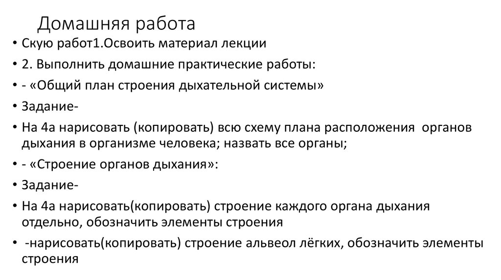 • Задание• На 4а нарисовать(копировать) строение каждого органа дыхания