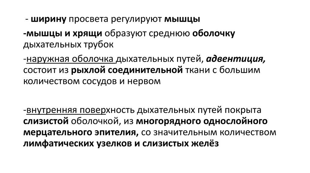 - ширину просвета регулируют мышцы-мышцы и хрящи образуют среднюю оболочку