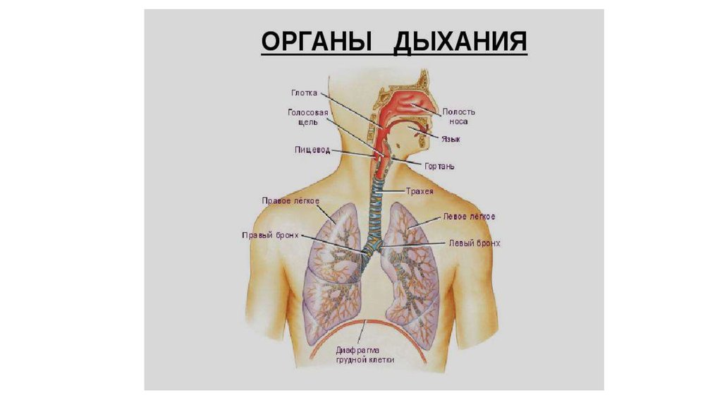 дыхания в организме человека; назвать все органы;