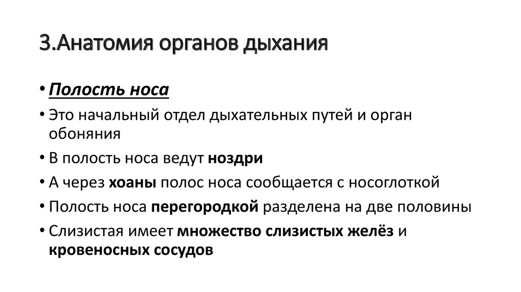 • Полость носа• Это начальный отдел дыхательных путей и орган