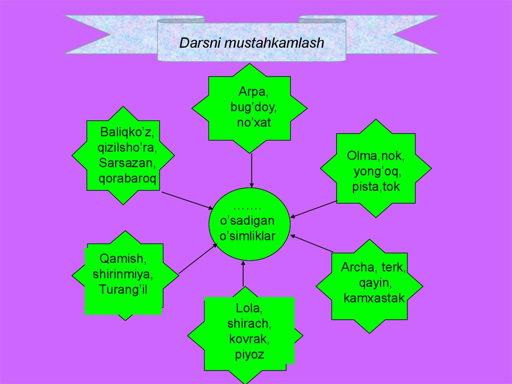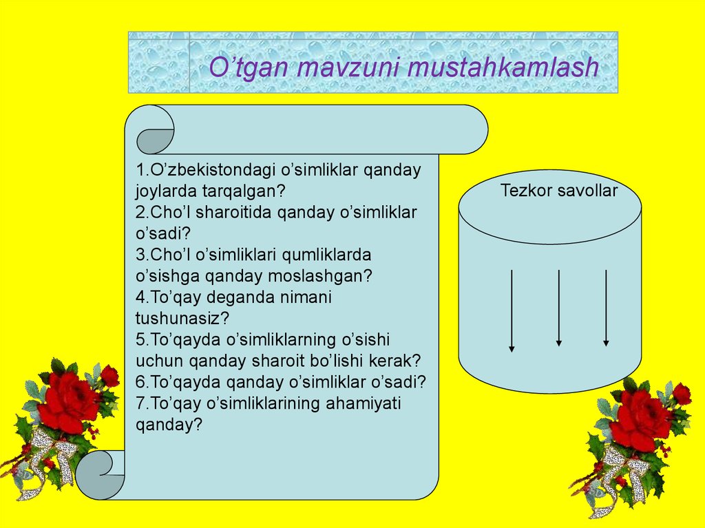 O’tgan mavzuni mustahkamlash1.O’zbekistondagi o’simliklar qanday