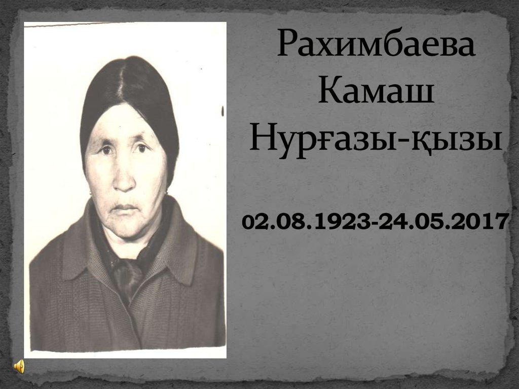 1. Рахимбаева Камаш Нурғазы-қызы 02.08.1923-24.05.2017
