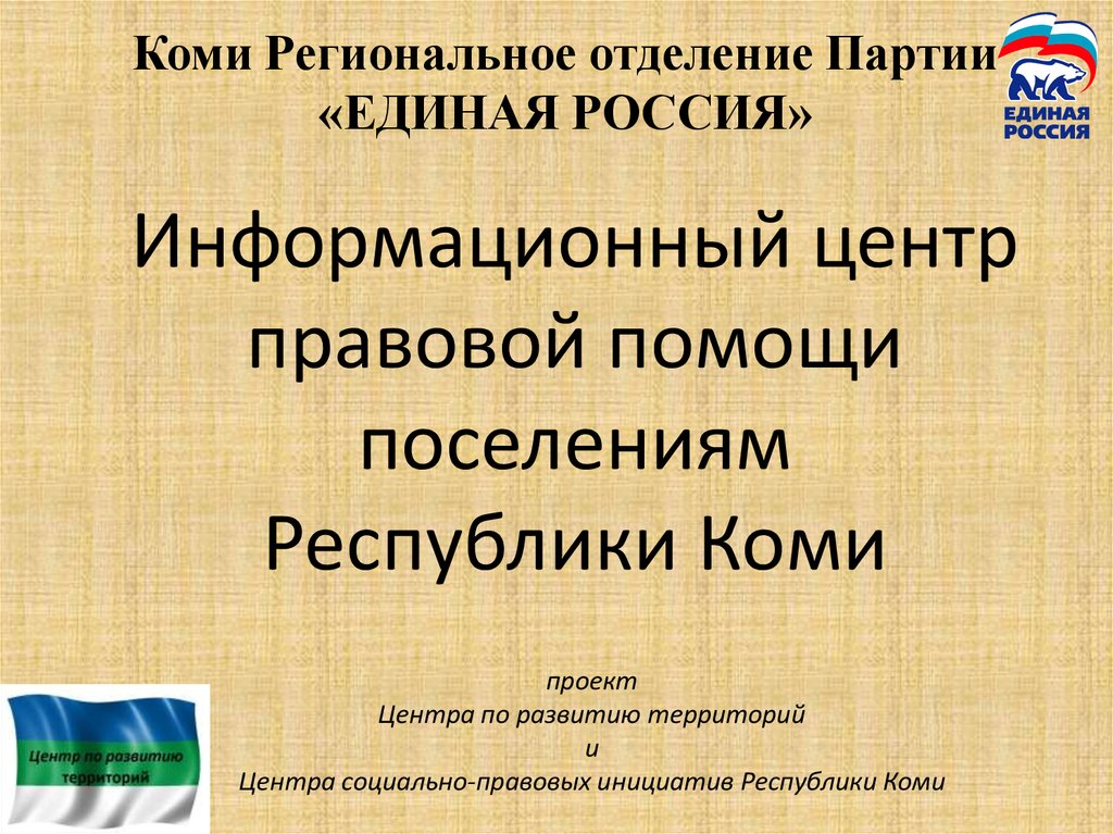 Коми Региональное отделение Партии «Единая Россия». Информационный центр правовой помощи поселениям Республики Коми