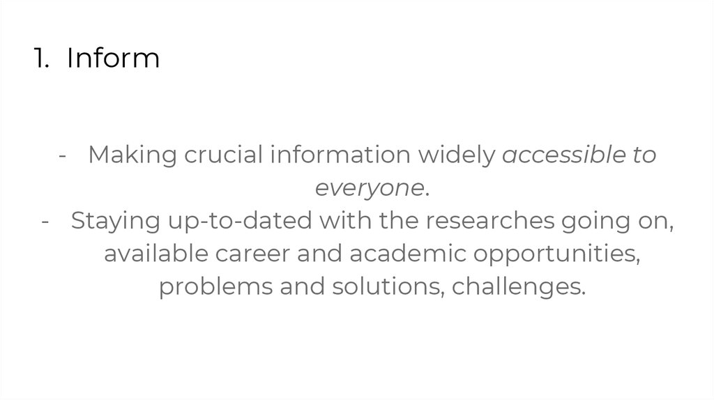 1. Inform- Making crucial information widely accessible to