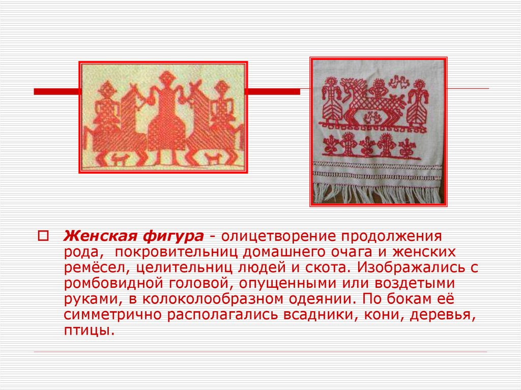 Женская фигура - олицетворение продолжениярода, покровительниц домашнего очага и женских
