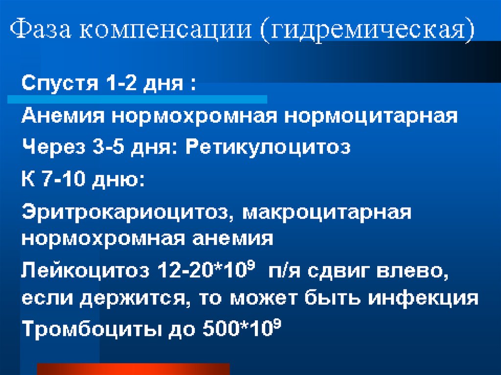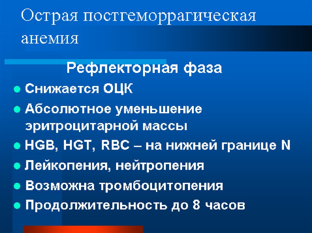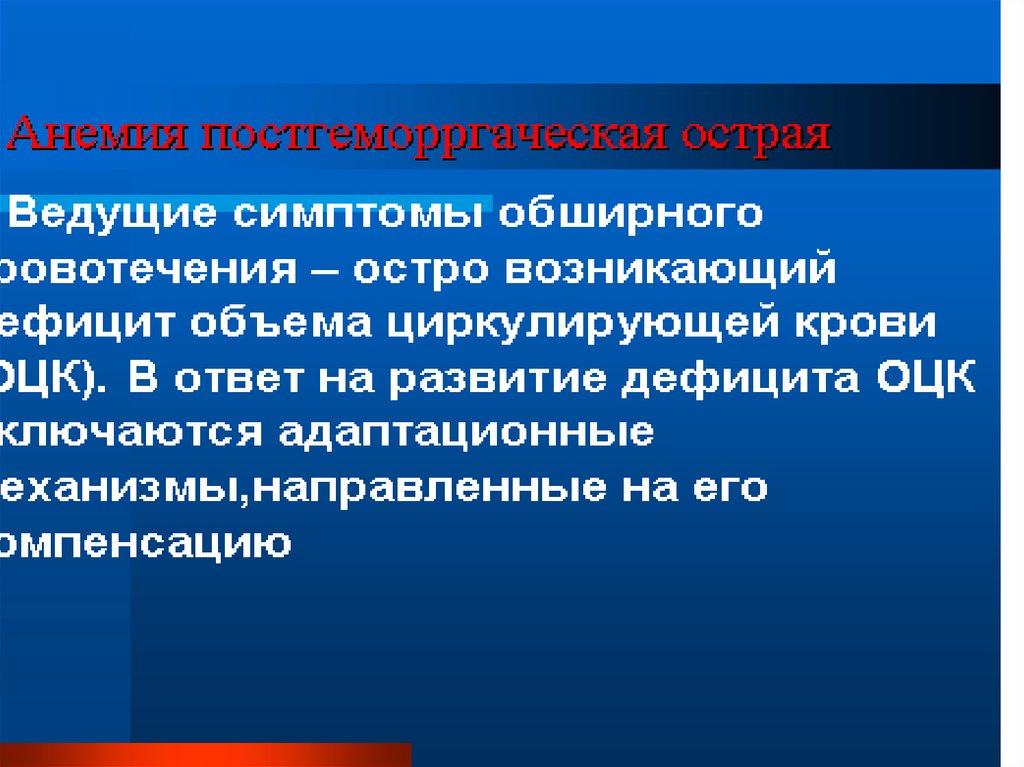 • -Острая постгеморрагическая анемия