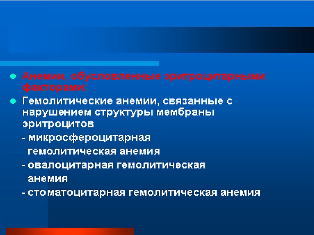 • - Анемии, обусловленные эритроцитарнымифакторами