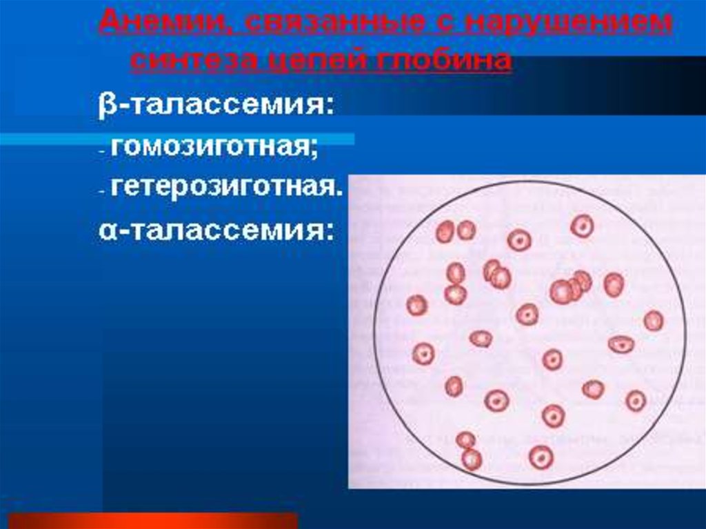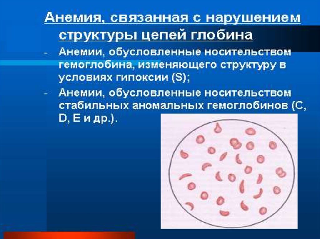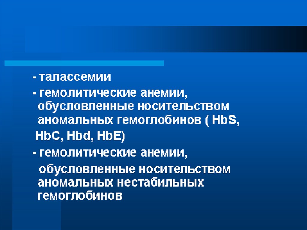 • Гемолитические анемии, связанные снарушенным синтезом глобина