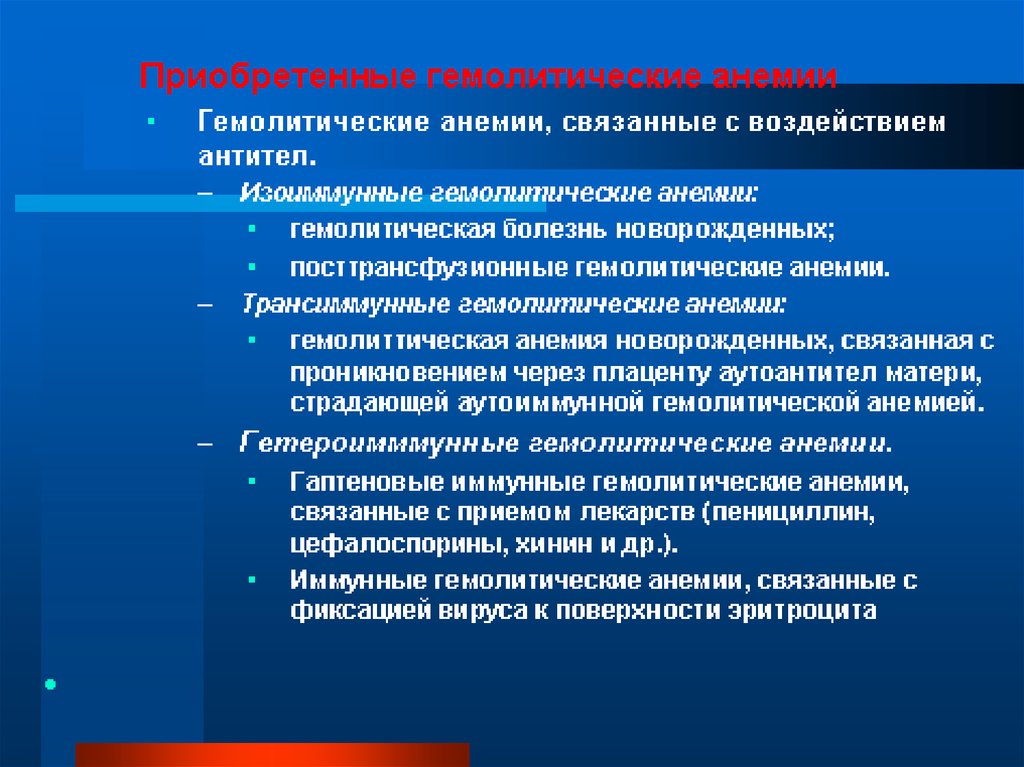 • Гемолитические анемии,