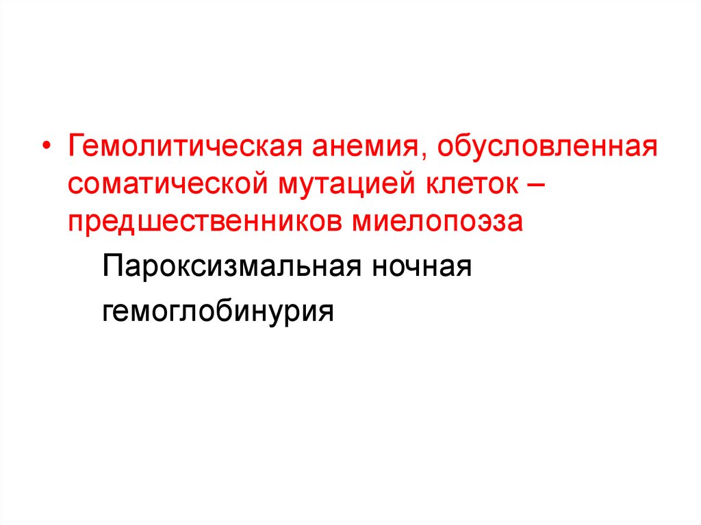 • Гемолитическая анемия, обусловленнаясоматической мутацией клеток –