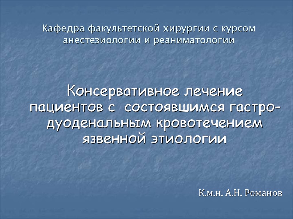 Консервативное лечениепациентов с состоявшимся гастродуоденальным кровотечением