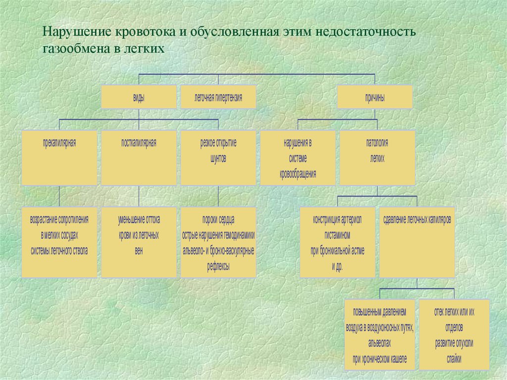 Нарушение кровотока, и обусловленная этим недостаточность газообмена в легких