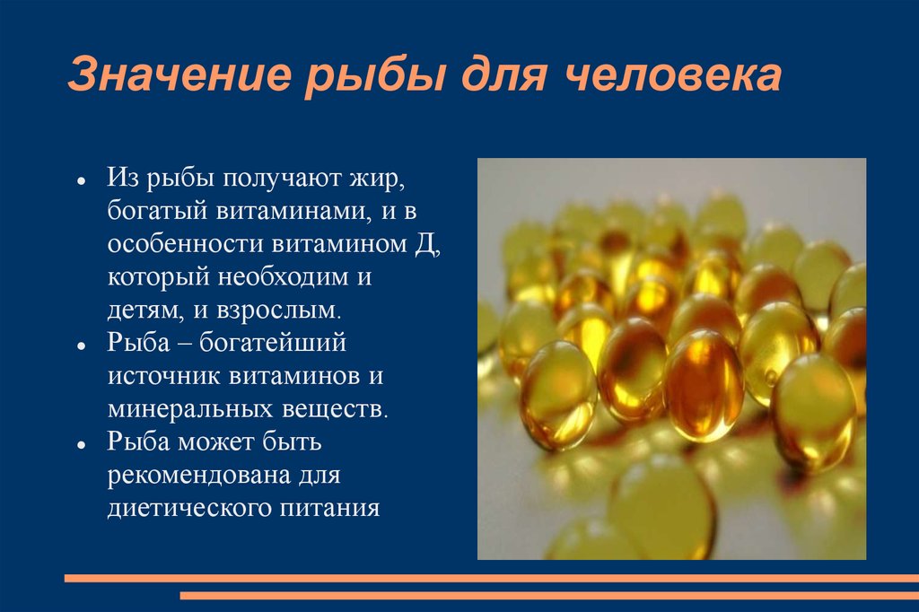Значение рыбы для человекаИз рыбы получают жир,