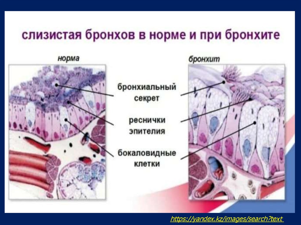 Изменения в бронхах при ХОБЛУвеличение количества бокаловидных