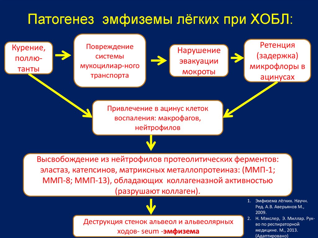 Патогенез эмфиземы лёгких при ХОБЛ:Курение,
