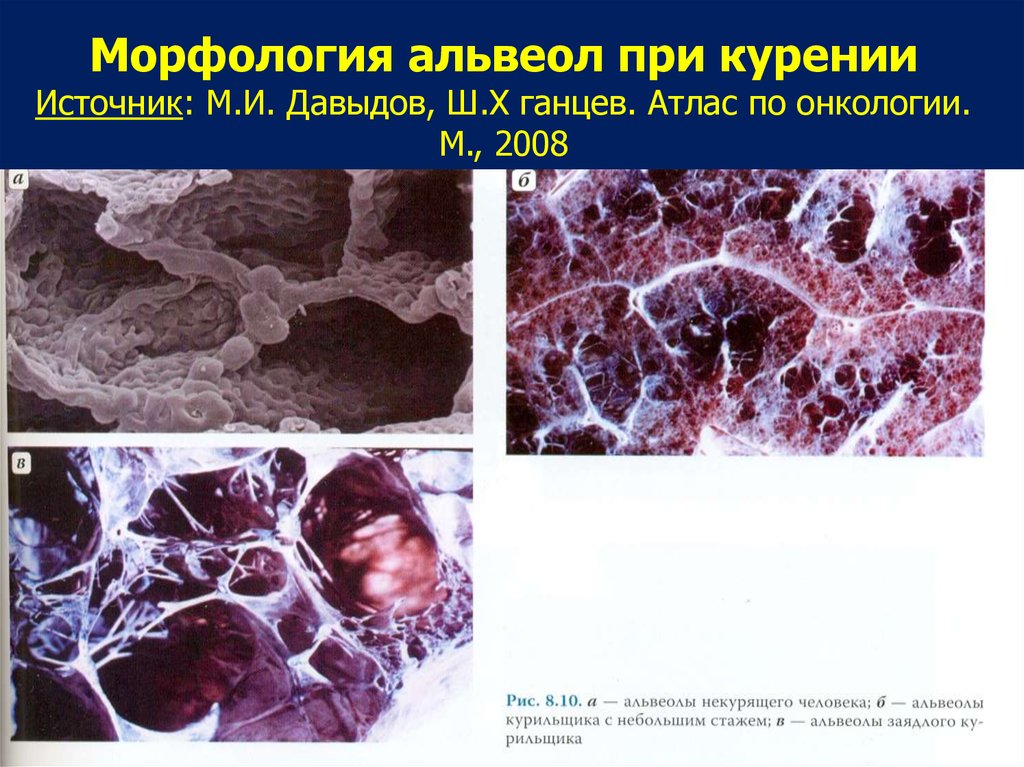 Морфология альвеол при куренииИсточник: М.И. Давыдов, Ш.Х ганцев. Атлас по онкологии.