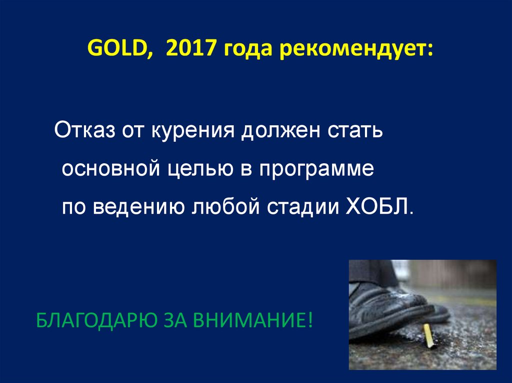 GOLD, 2017 года рекомендует:Отказ от курения должен стать