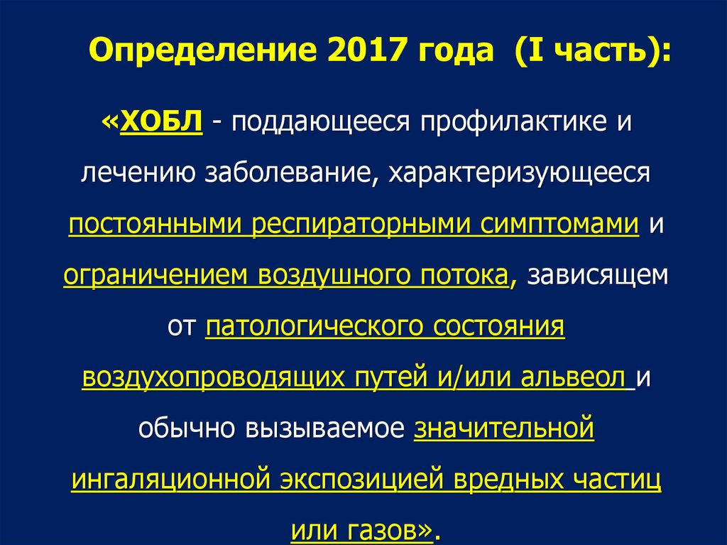 Определение 2017 года (I часть):«ХОБЛ - поддающееся профилактике и