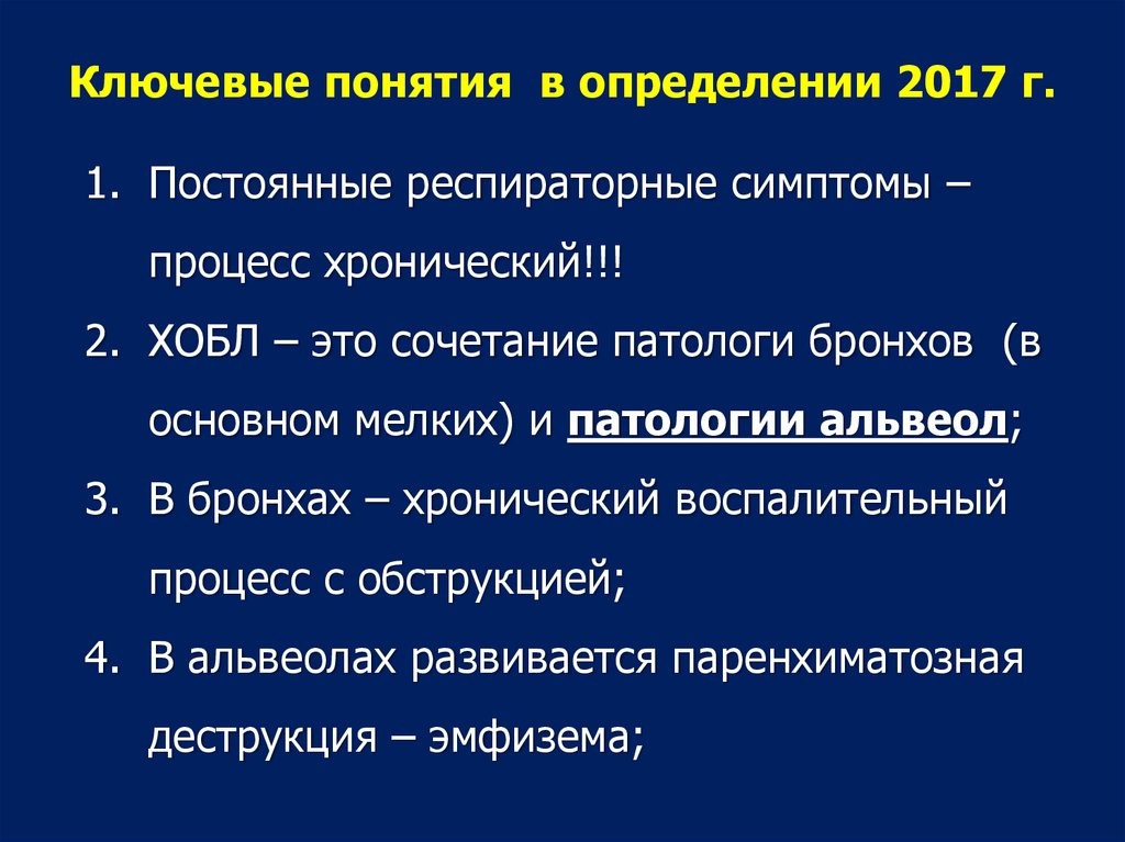 Ключевые понятия в определении 2017 г.1. Постоянные респираторные симптомы –