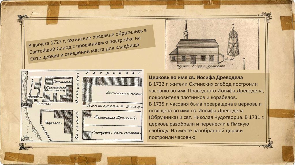 Церковь во имя св. Иосифа ДреводелаВ 1722 г. жители Охтинских слобод построили