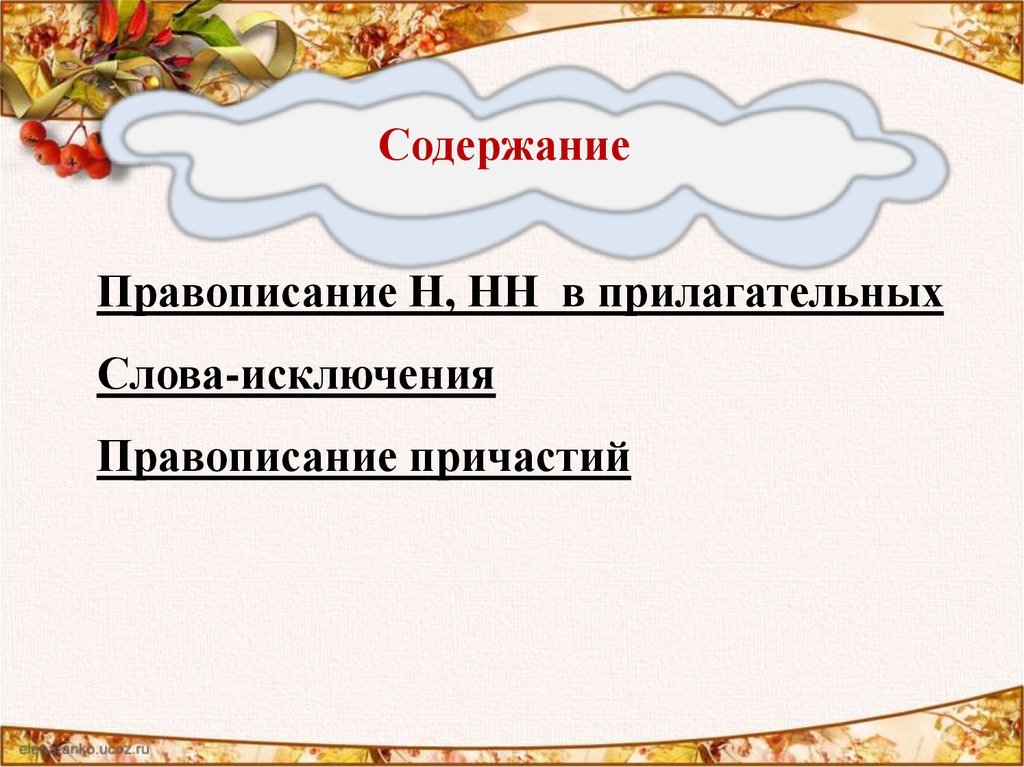 СодержаниеПравописание Н, НН в прилагательных