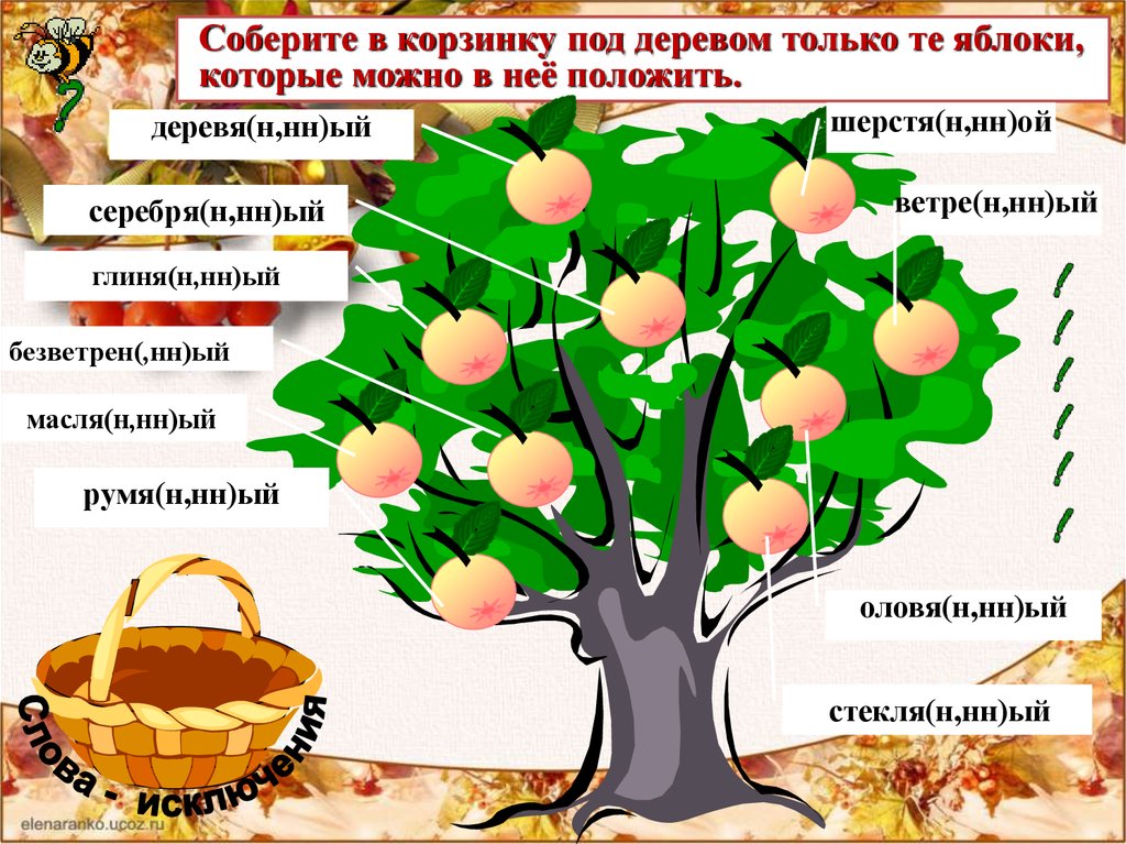 Соберите в корзинку под деревом только те яблоки,которые можно в неё положить.
