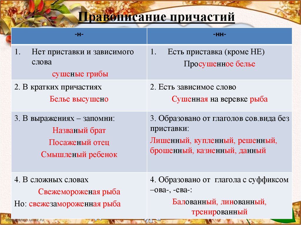 Правописание причастий
