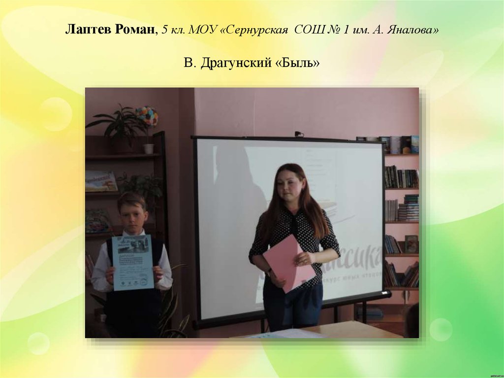 Лаптев Роман, 5 кл. МОУ «Сернурская СОШ № 1 им. А. Яналова»В. Драгунский «Быль»