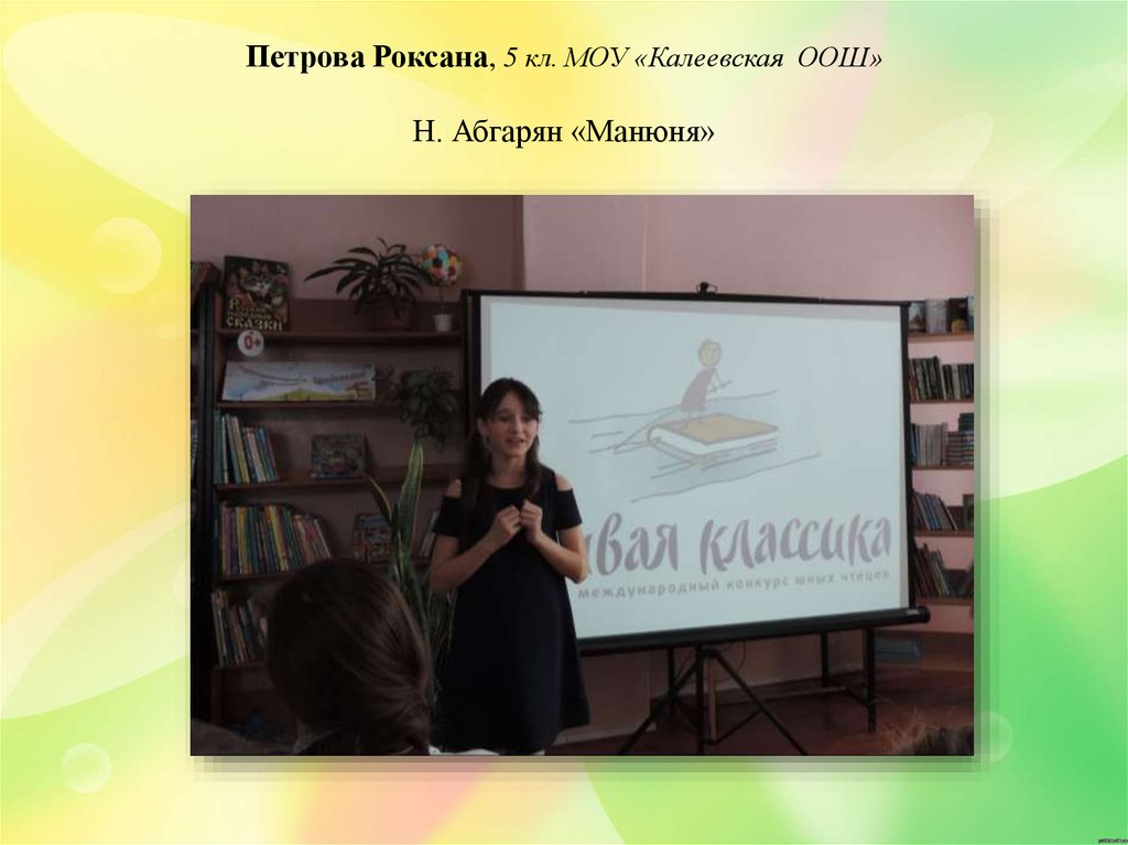 Петрова Роксана, 5 кл. МОУ «Калеевская ООШ»Н. Абгарян «Манюня»