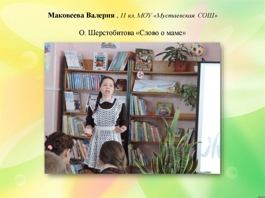 Маковеева Валерия , 11 кл. МОУ «Мустаевская СОШ»О. Шерстобитова «Слово о маме»