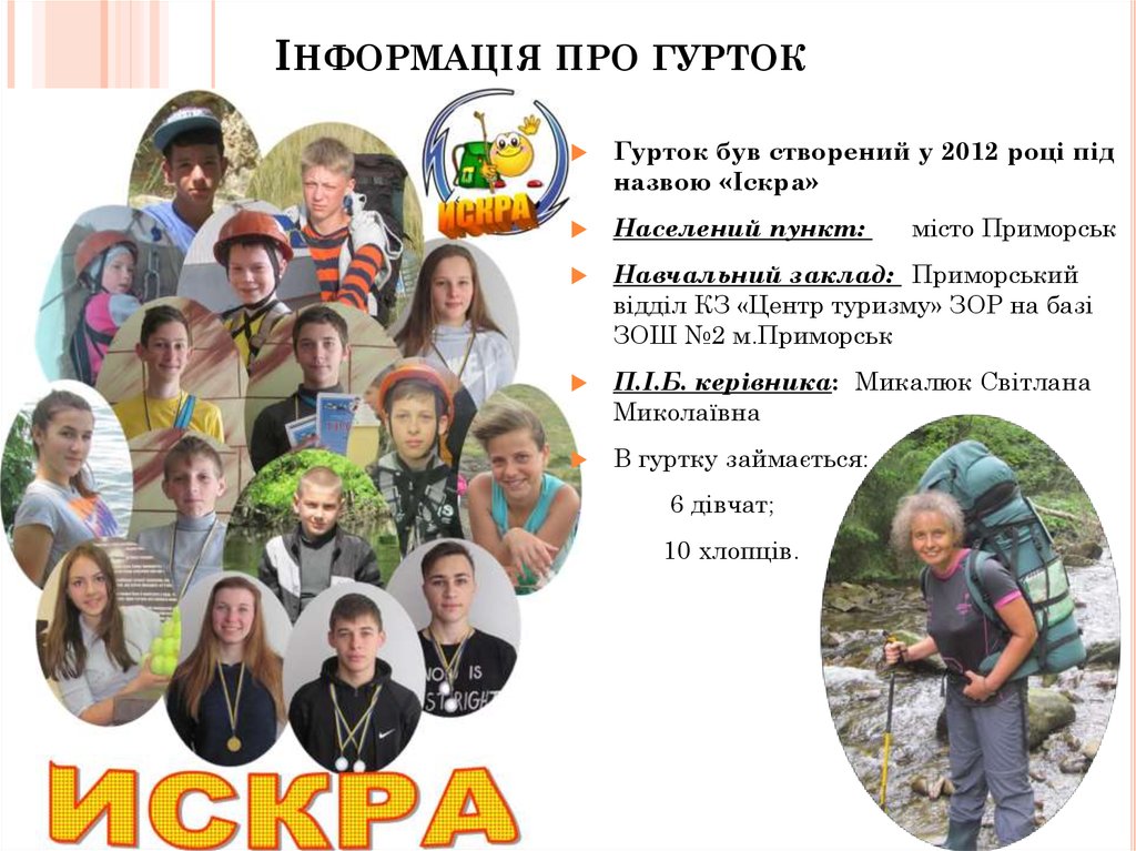 ІНФОРМАЦІЯ ПРО ГУРТОКГурток був створений у 2012 році під