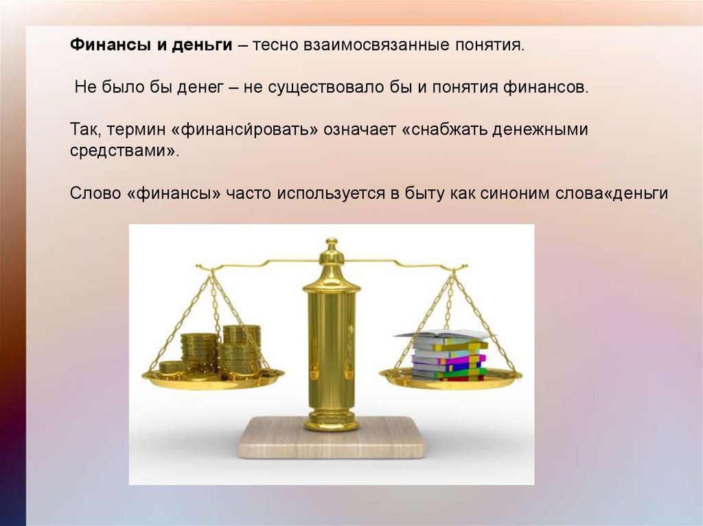 Финансы и деньги – тесно взаимосвязанные понятия.Не было бы денег – не существовало бы и понятия финансов.