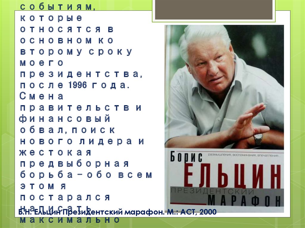 Б.Н. Ельцин Президентский марафон. М.: АСТ, 2000