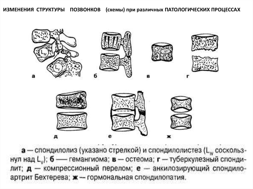 ИЗМЕНЕНИЯ СТРУКТУРЫ ПОЗВОНКОВ (схемы) при различных ПАТОЛОГИЧЕСКИХ ПРОЦЕССАХ17. СПОНДИЛЕЗ