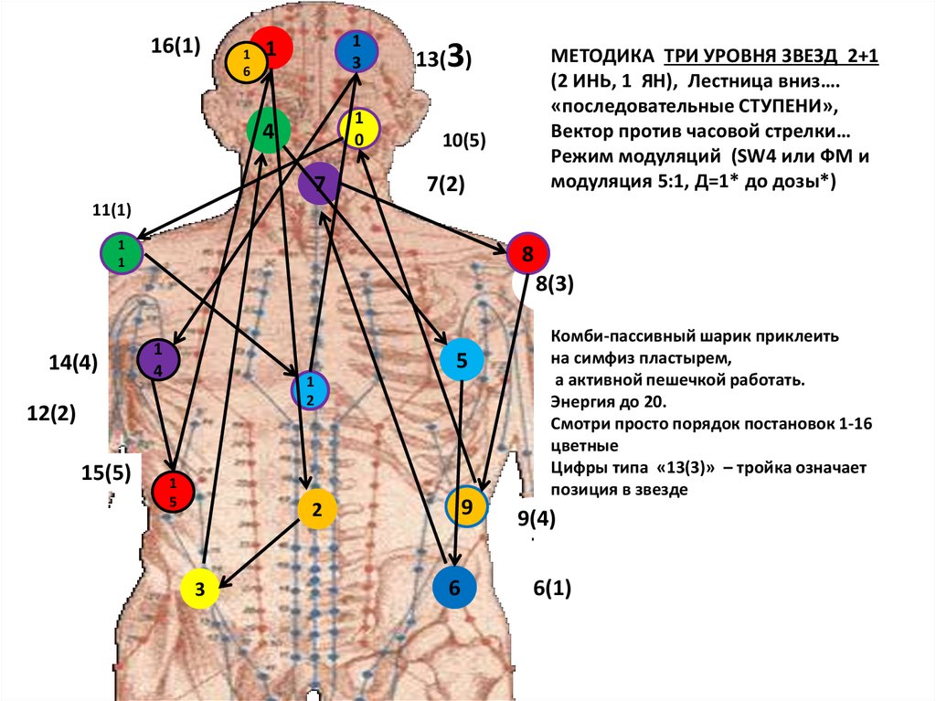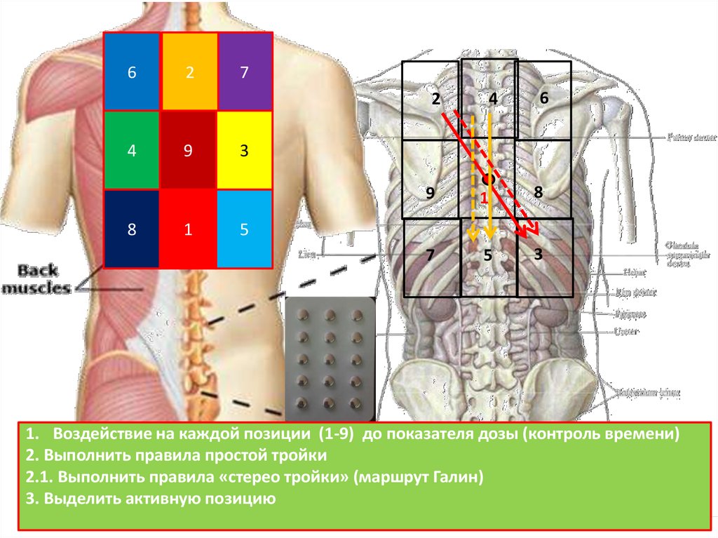 1. Воздействие на каждой позиции (1-9) до показателя дозы (контроль времени)