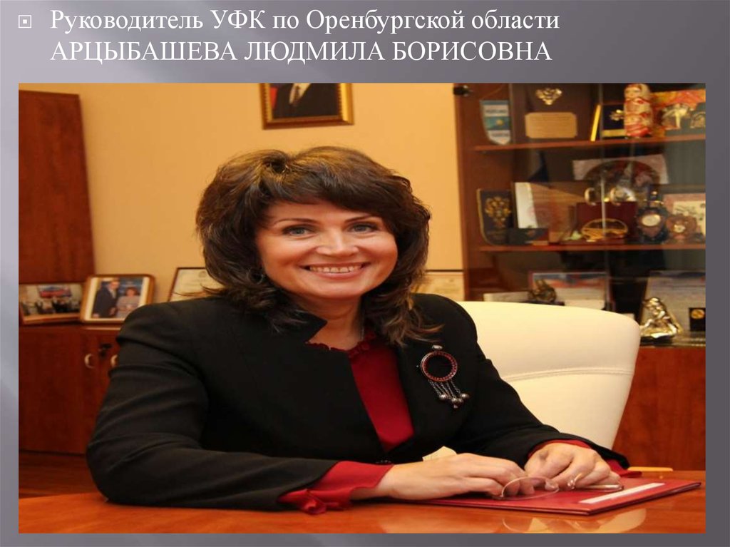 Руководитель УФК по Оренбургской областиАРЦЫБАШЕВА ЛЮДМИЛА БОРИСОВНА