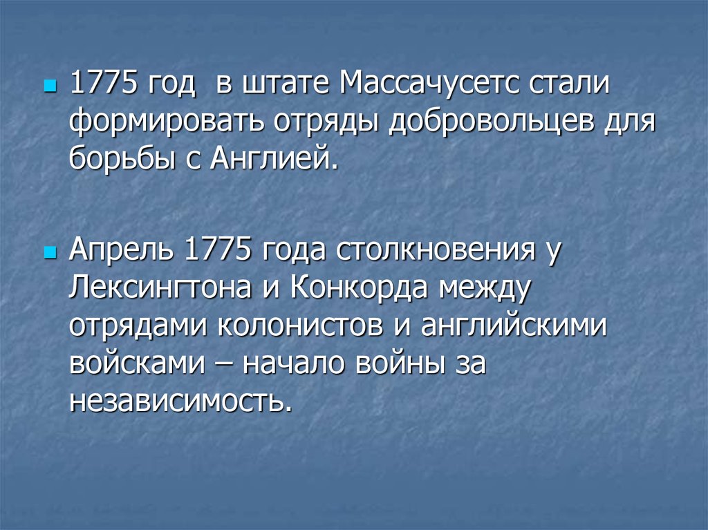 1775 год в штате Массачусетс сталиформировать отряды добровольцев для