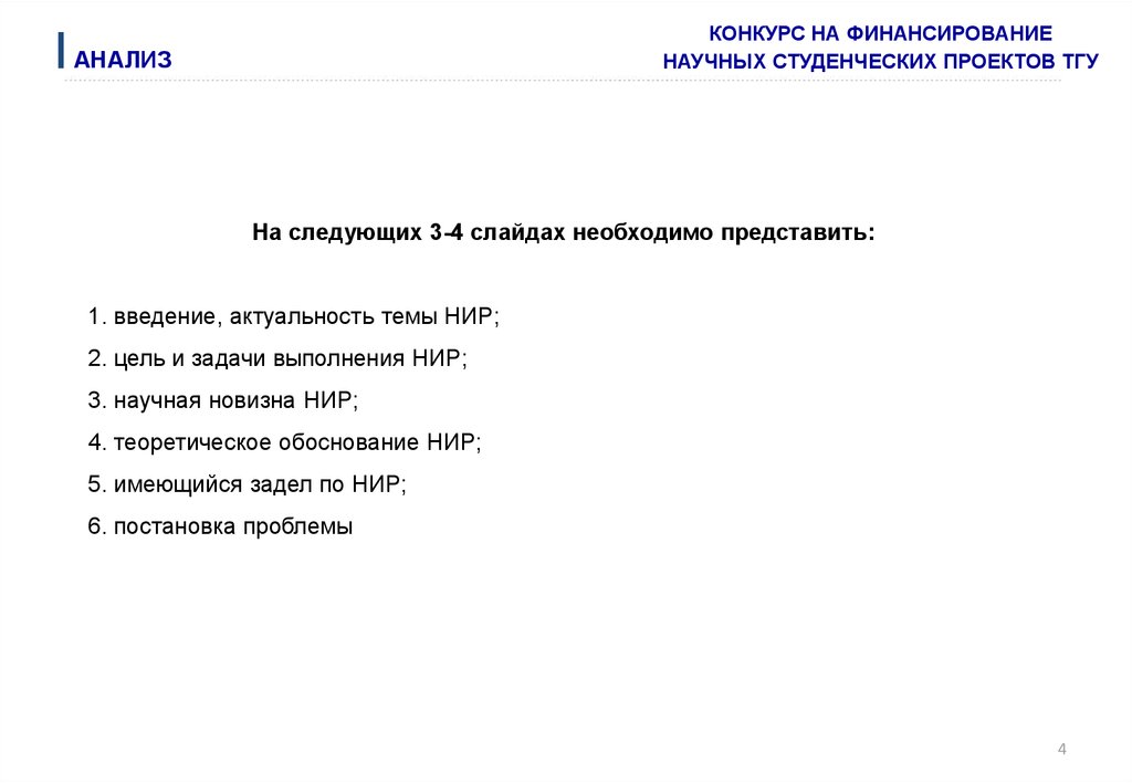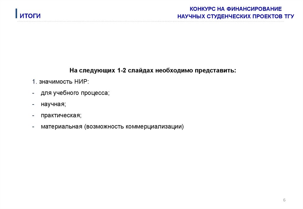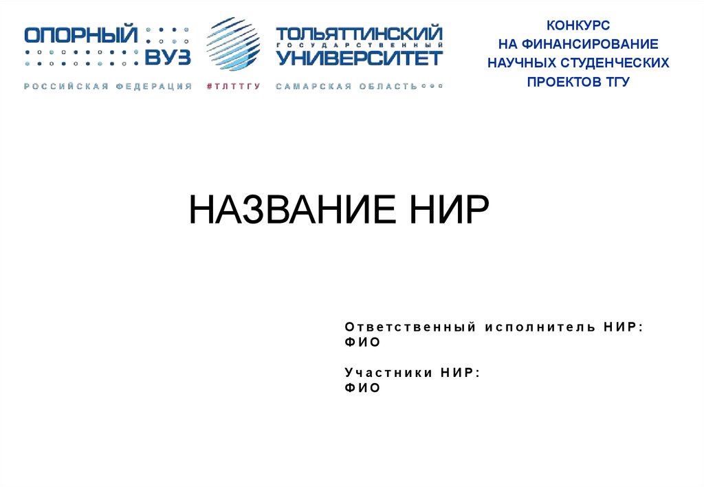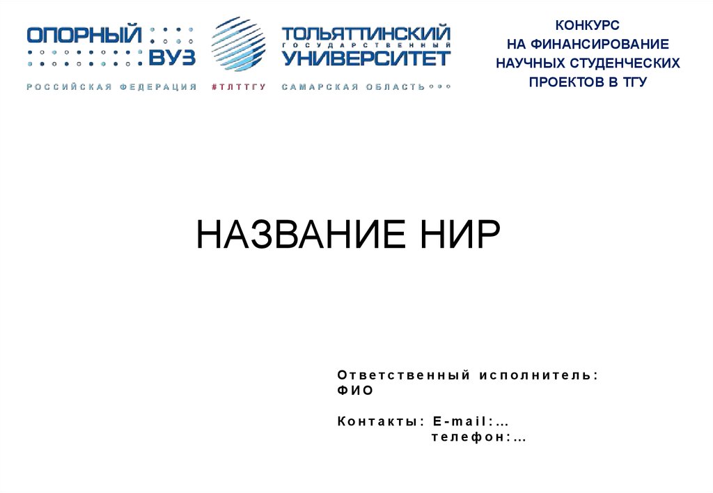 Требования к структуре презентации для конкурса на финансирование проектов Тольяттинского государственного университета