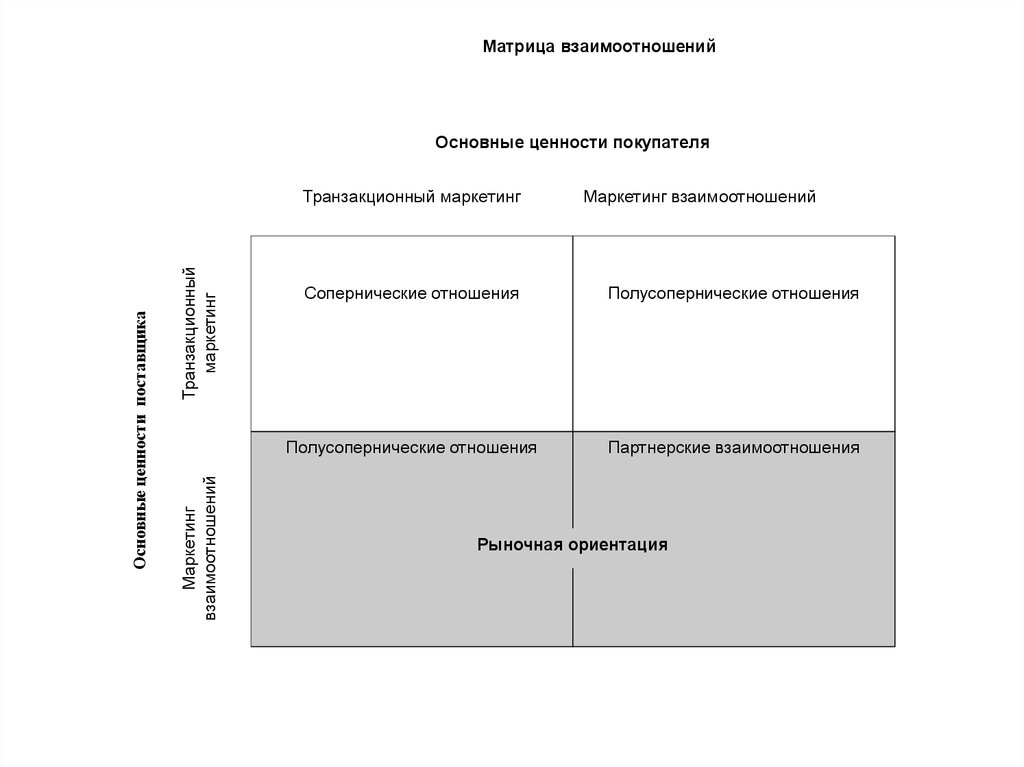 Матрица взаимоотношенийОсновные ценности покупателя
