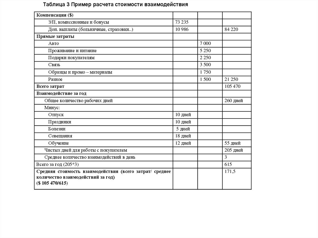 Таблица 3 Пример расчета стоимости взаимодействияКомпенсация ($)