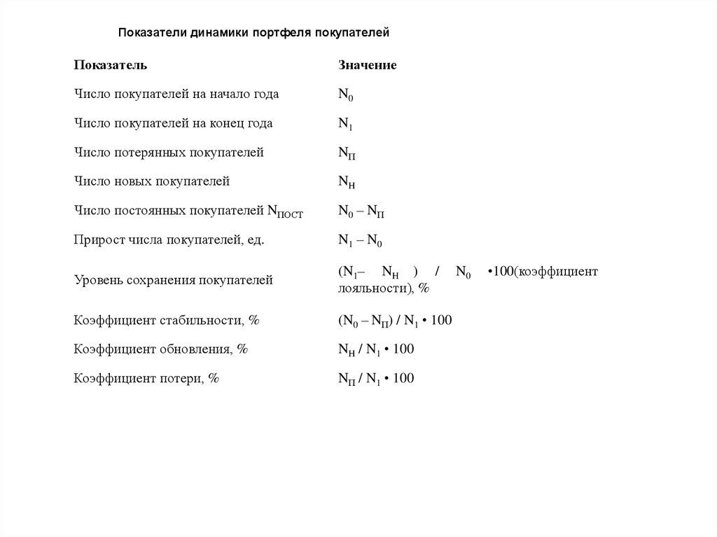 Показатели динамики портфеля покупателейПоказатель