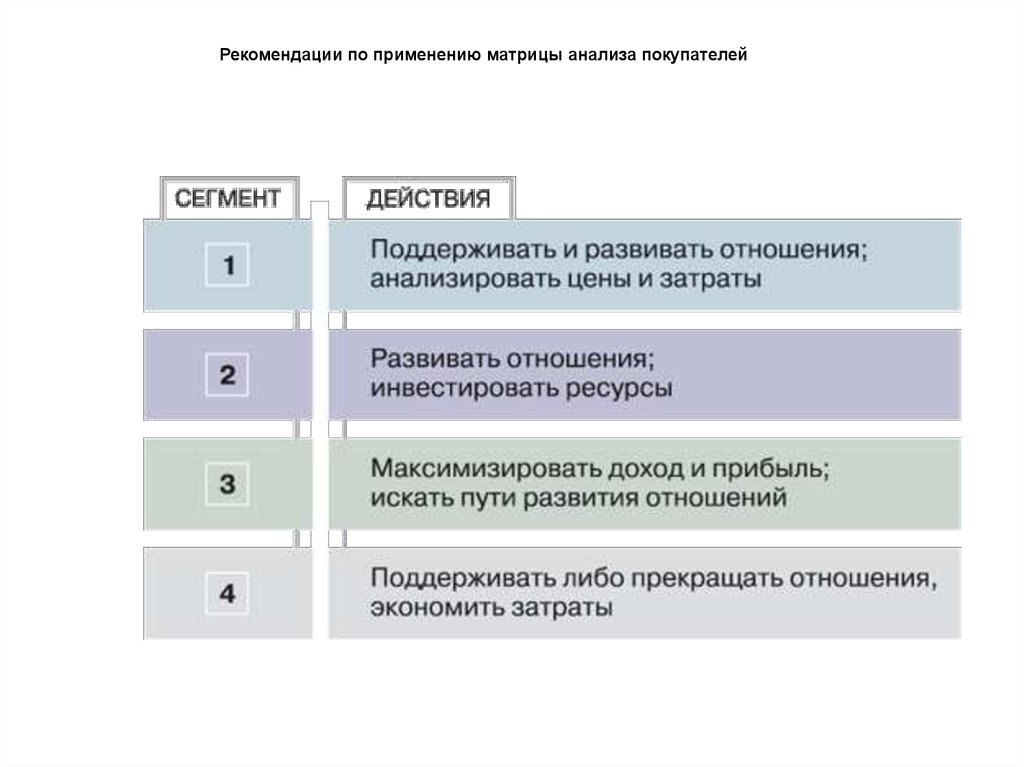 Рекомендации по применению матрицы анализа покупателей11.