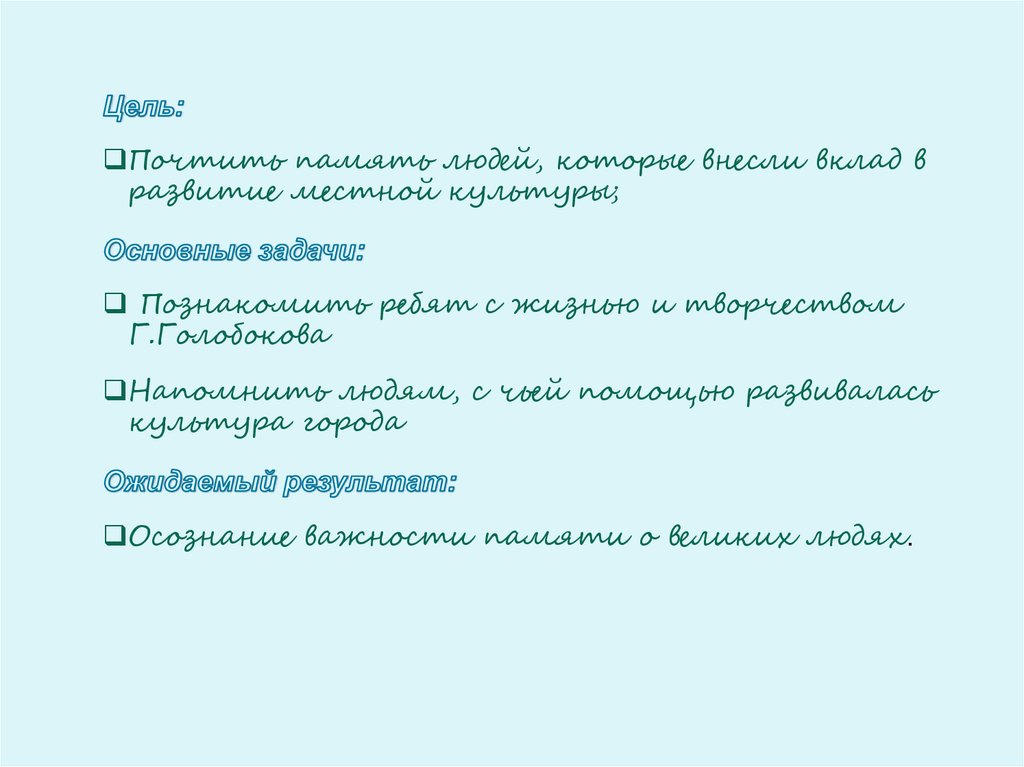 Почтить память людей, которые внесли вклад вразвитие местной культуры;