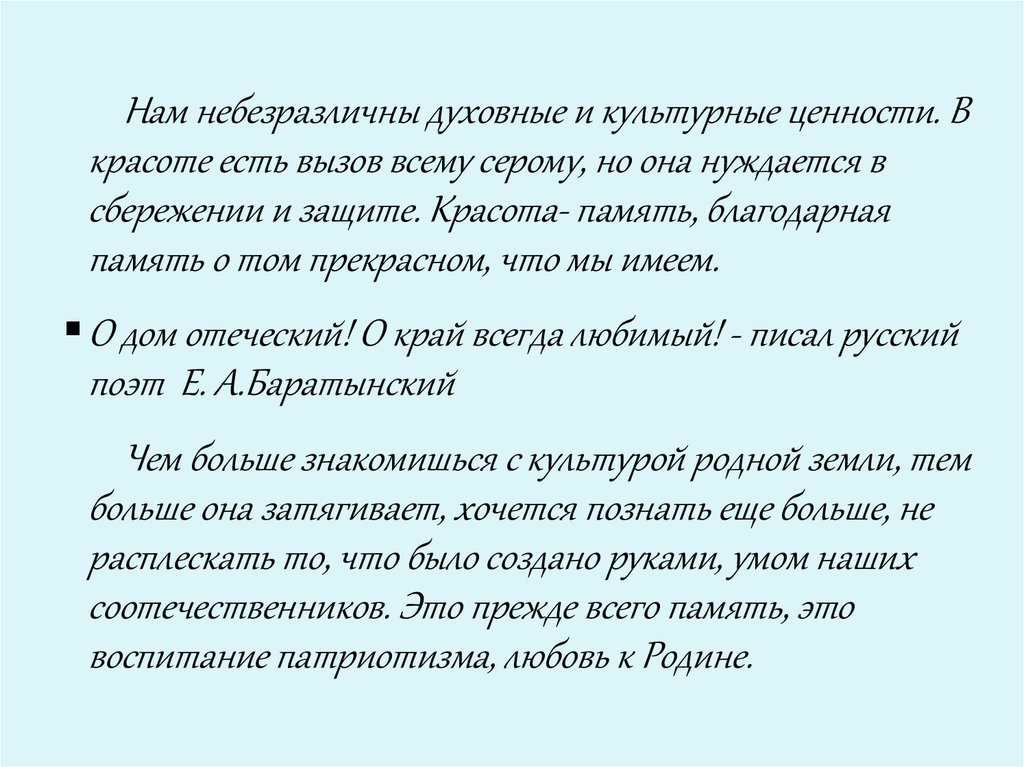 Нам небезразличны духовные и культурные ценности. Вкрасоте есть вызов всему серому, но она нуждается в